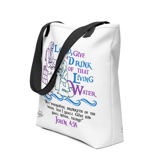 “Lord, give me a drink of that Living Water” Tote bag - John 4:14 (KJV)