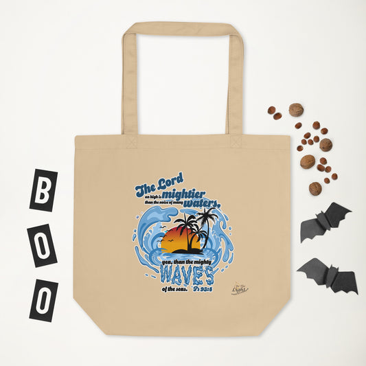 "The Lord on high is mightier than the noise of many waters” Tan Eco Tote Bag – Ps 93:4, KJV
