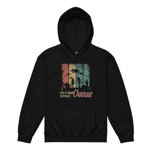 Fearless Faith Youth Tee – “Life Is Scary Without Jesus” Spooky-Cool Christian Youth T-Shirt